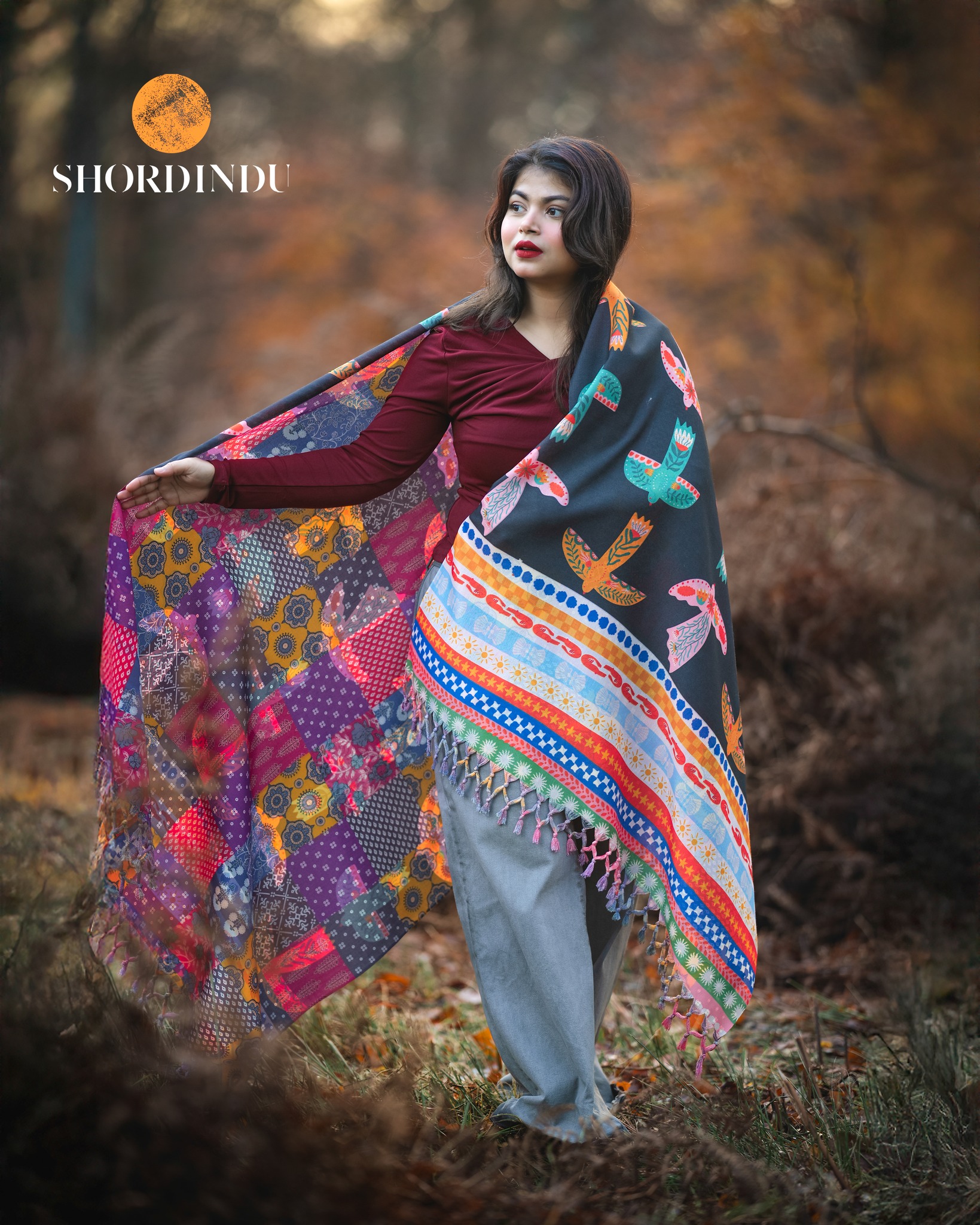 এক পিঠে বর্ণিল মিনিমাল মোটিফ আরেক পিঠে প্যাচওয়ার্ক প্রিন্ট- দুইয়ে মিলে এক, শরদিন্দু শীত আয়োজন-২০২৫ এর নতুন সংযোজন ‘উড়ালপঙ্খি‘